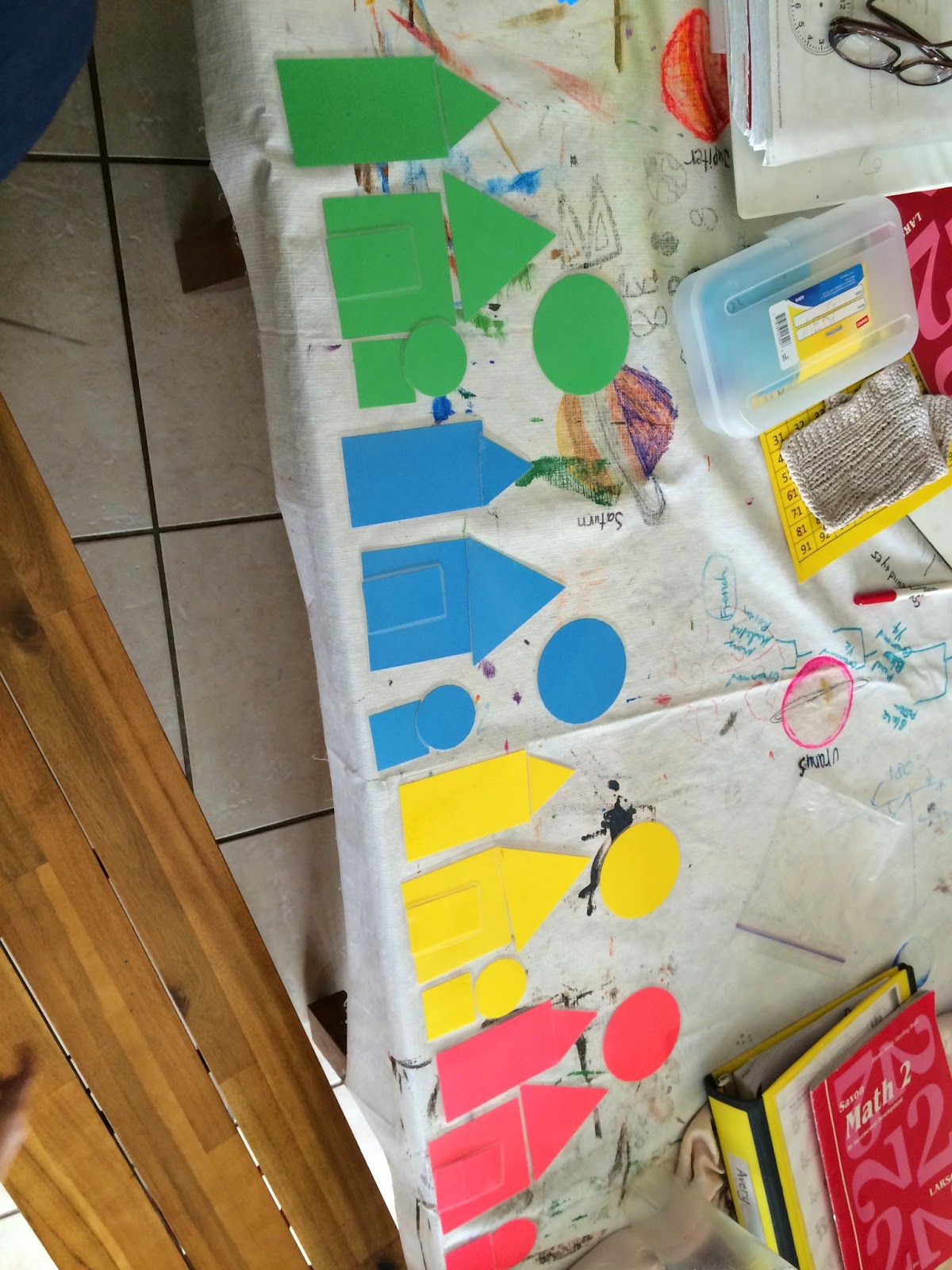 We were sorting shapes by attribute and when I wasn't looking, Avery and Aaron built a town out of them. |